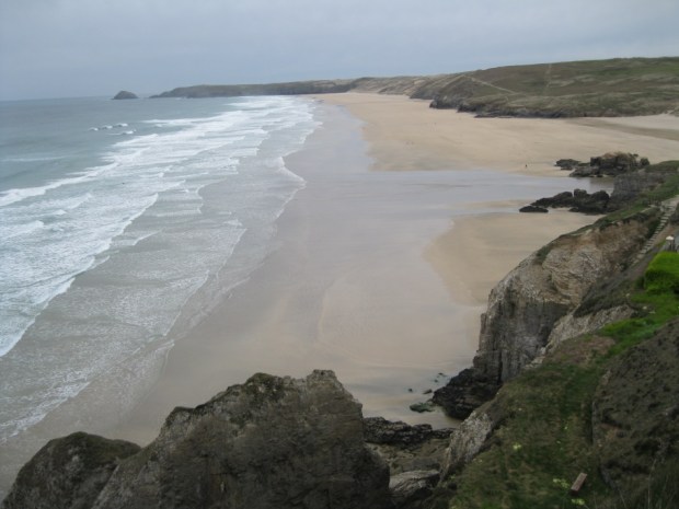 A misty start to our second day in Newquay, but it was a grey precursor to a bright, fast day; Pat transported most of my gear to Perranporth, caught the bus back to Hollywell and then walked to Perranporth with me from there. At this point I’d say I don’t deserve her, but it’s getting a bit repetitive and boring, so I wont.