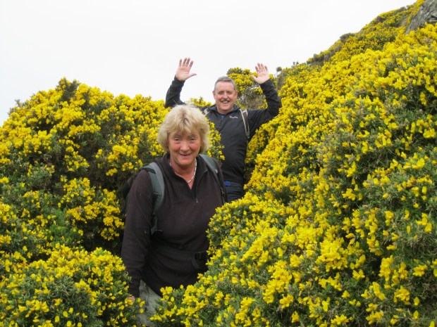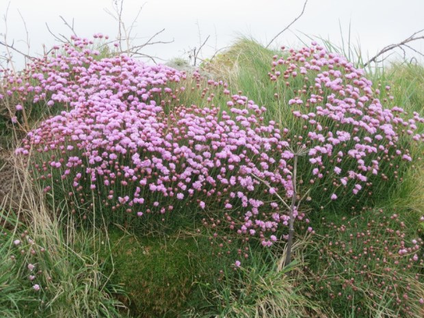 After her long, early morning drive from Bristol to St Ives, Pat joined me after breakfast for part of the 14 mile walk to Pendeen. This walk is one of the few sections rated “challenging” on the SWCP web site and I know many people who rave about it: my expectations were therefore high. In the event, I was a bit disappointed. Sure, there were great views, lots of ups and downs, and lofty cliffs covered in yellow and pink flowers but, while pleasantly surprised not to find the gradients as bad as some earlier days, there was one major drawback – the rock and boulder strewn path, which made it impossible to get into any sort of rhythm while hopping from rock to rock like demented frogs. I guess the tough going is what earns the challenging rating, but “unpleasantly tough underfoot” would be much more accurate. The other “challenging” stretches are physically demanding, but didn’t reduce me to a foul-mouthed, purple faced wreck as this one did. Pat left me at Zennor to catch the bus back to St Ives, reclaim her car and then drive to meet me in Pendeen.