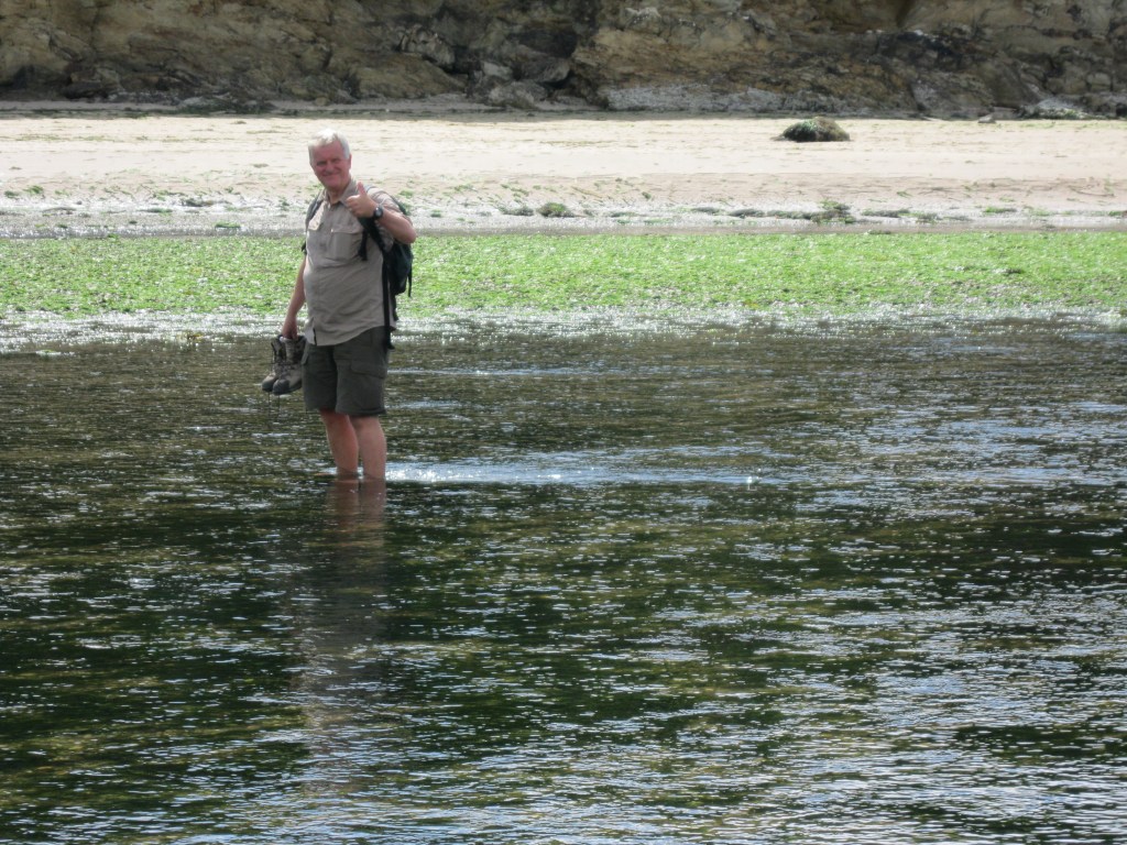 Anyhow, back to the walk. The highlight of the day was undoubtedly wading across the River Erme, which can only be crossed a couple of hours a day at low tide. I crossed the Erme with a retired insurance-man from Cheltenham who was doing the path a bit at a time. I couldn’t shake him off all the way to Bigbury and grew a little tired of his opinionated, right wing ranting – for example, on how much he hated students and benefit “scroungers.” However, I did feel a bit sorry for him when, after I said Pat was picking me up, he sadly reflected “I haven’t got one of those at home.” Once again, a reminder of how lucky I was—— but also of the sexist, right wing attitudes of a typical Daily Mail reader.